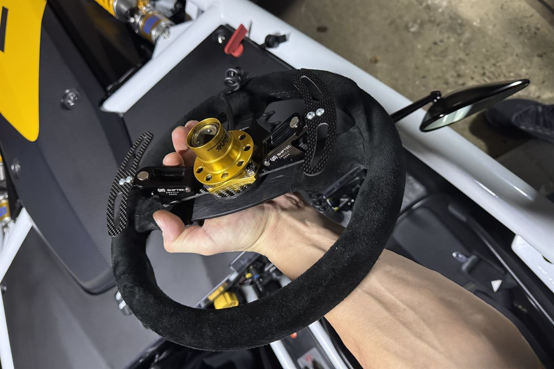 Pearl White Chassis w/Yellow 4R Livery, RHD, MPH Speedo, Carbon Wheels