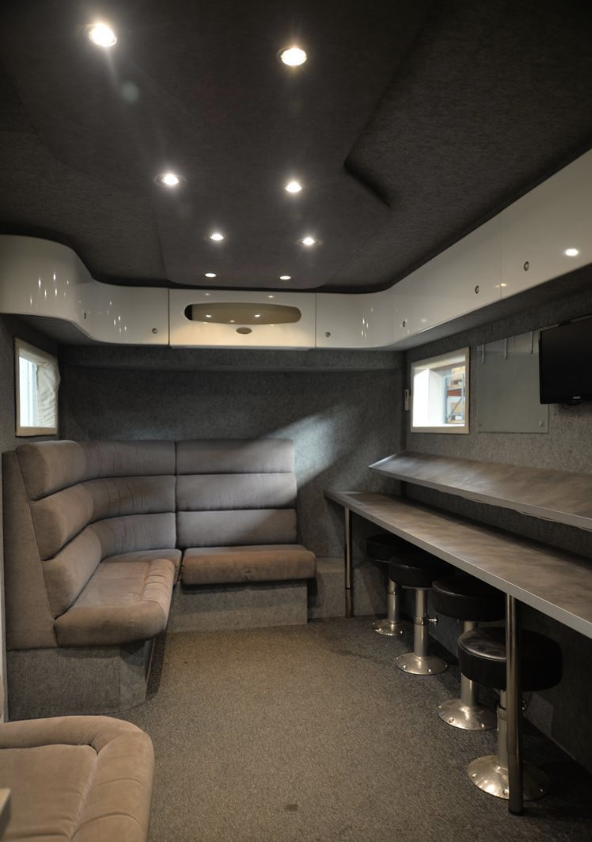 - Room for 2 saloon cars on benches with cupboards and drawer storage below