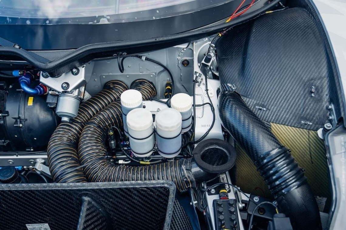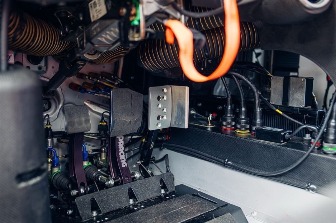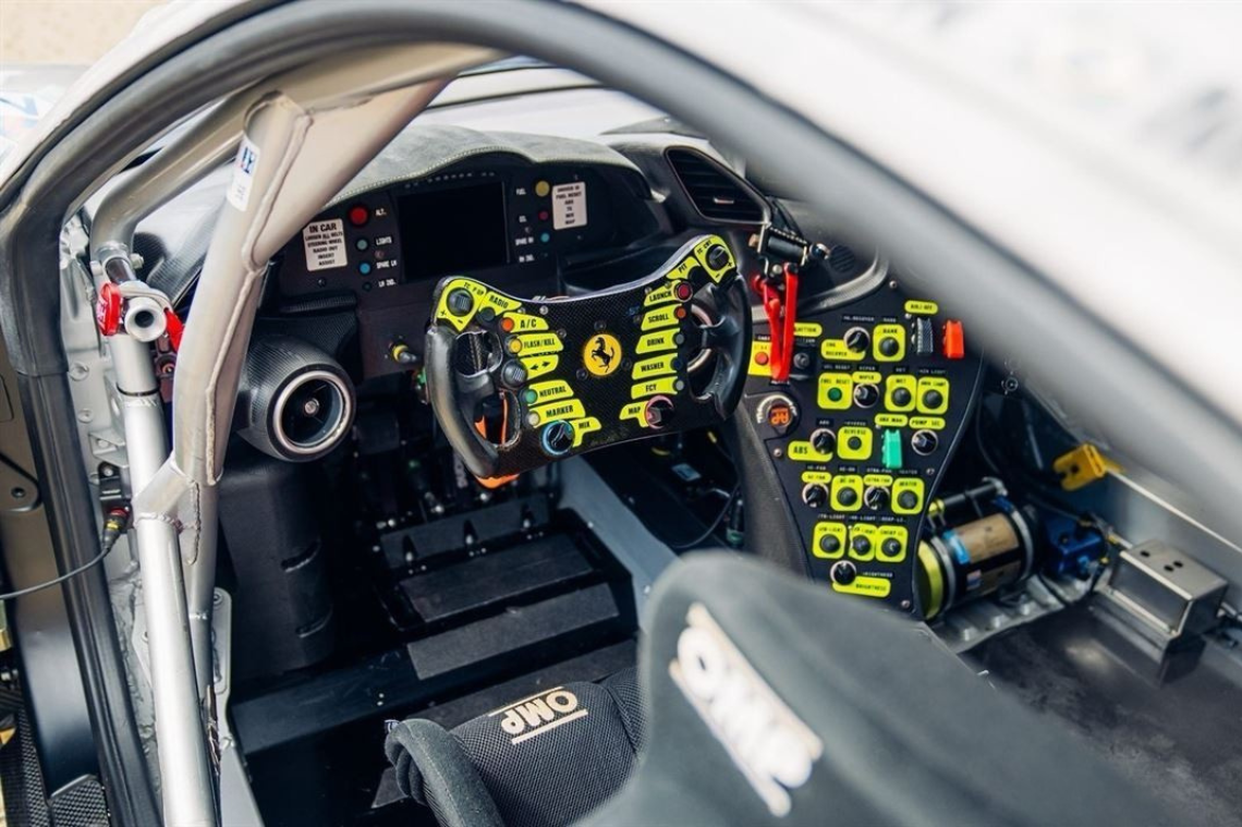 It is equipped with five-way adjustable Multimatic dampers and features long-distance headlights, long-distance brakes, air conditioning, a driver helmet cooling system, cockpit lighting, a drinking system from Progressive Motorsport, a carbon fiber clutch, F1-style steel wheel nuts, Motec 4G telemetry, a rearview camera, a lithium battery, and a tire pressure and temperature monitoring system. It also offers a USB data recording and download system.