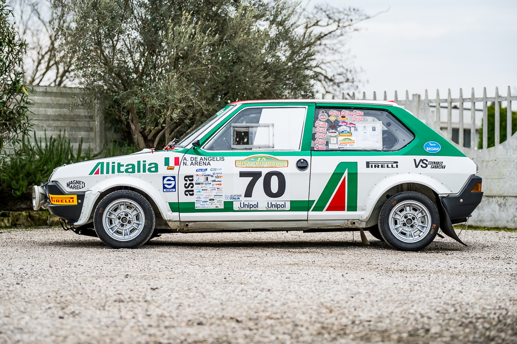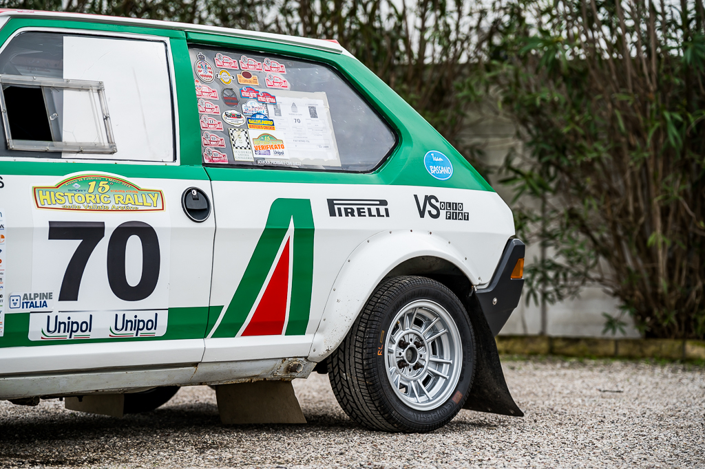 Engine prepared by Gozzoli (Maranello), featuring Weber 48 carburetors; suspension setup by Valentino (Padova); Bacci straight-cut dog gearbox; heavy-duty driveshafts and joints, with Ritmo 130 uprights, all built in compliance with FIA specifications.