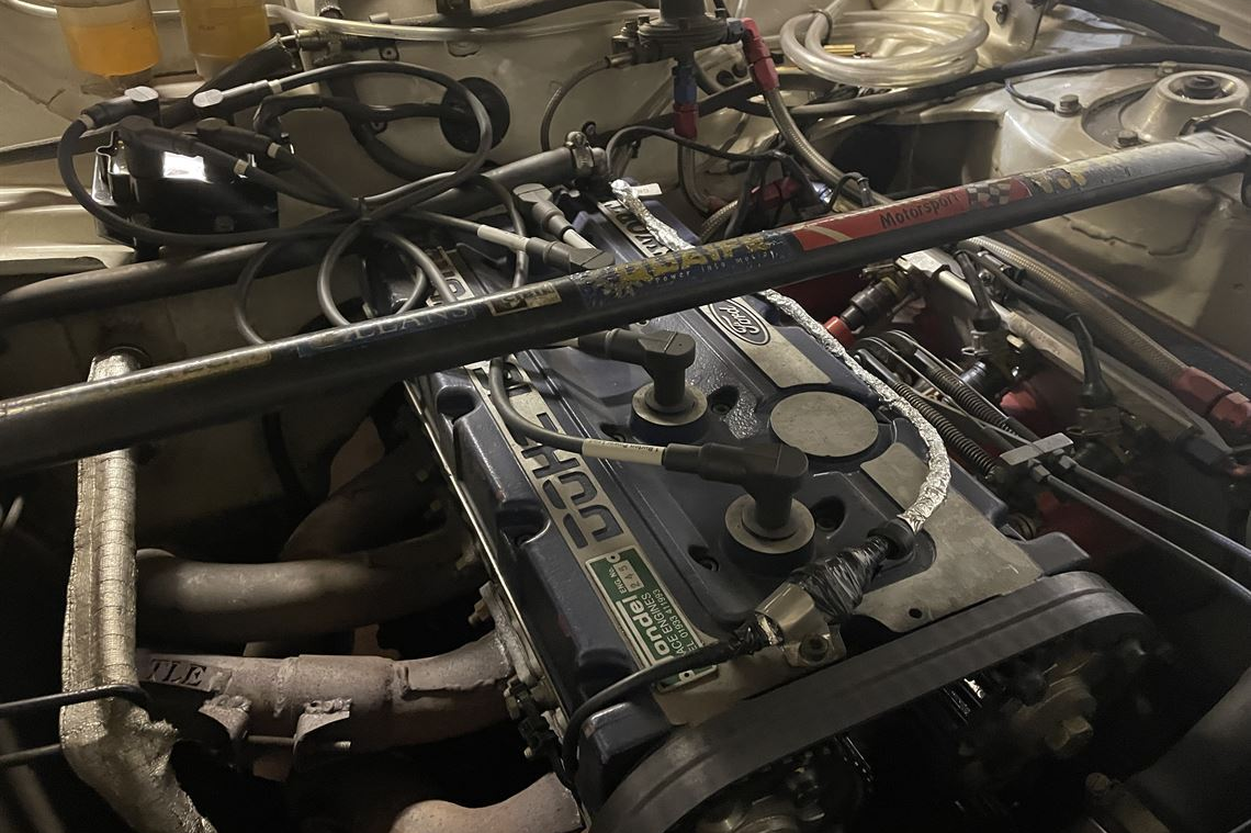 The car was originally a 1600 sport model and converted into a rally car many years ago. It has a na cosworth yb 2 litre engine on mbe management and itbs built by Jondell. This engine is very strong and has plenty of torque geared to over 130mph. I have had 122mph at Bovington and was tempted to reduce the final drive but the car works so well i am reluctant to change anything. it has a fairly new Quaife 60G sequential dog gearbox with a 1:1 6th gear.