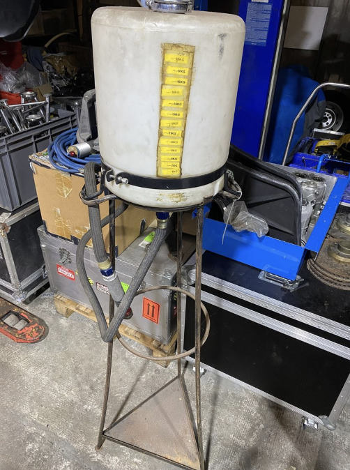 Fuel refill bottle on stand with quick release fitting