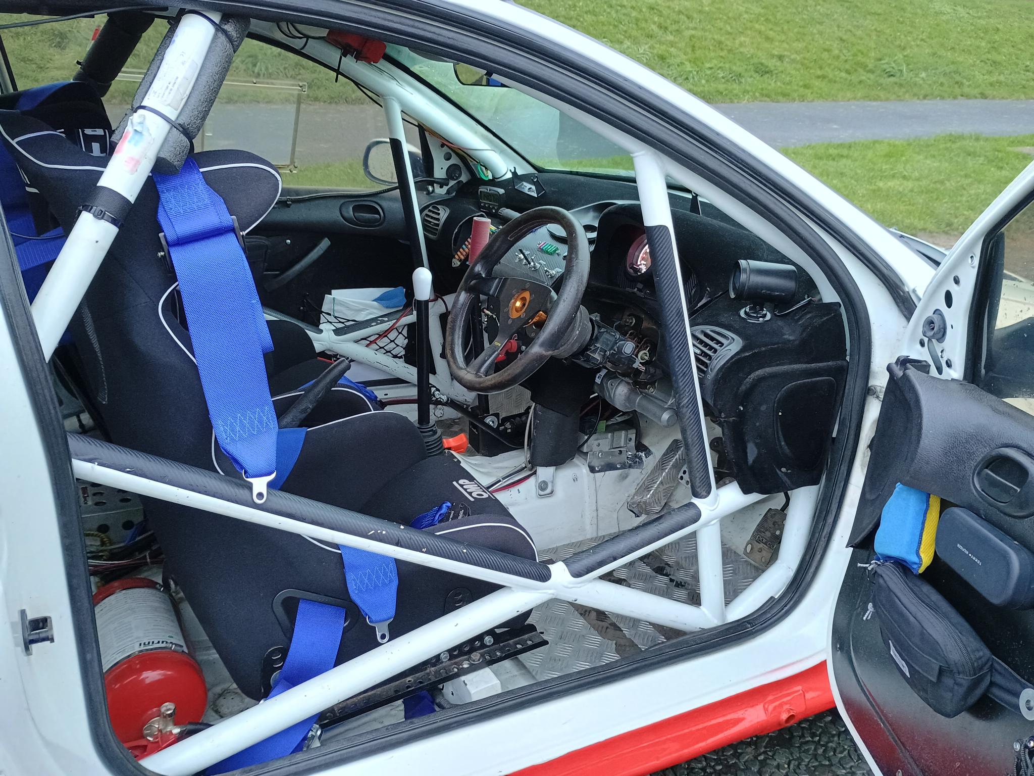 Custom cages weld in international cage professionally installed by SW Motorsport and seam welded shell with front cup car top mount plates.