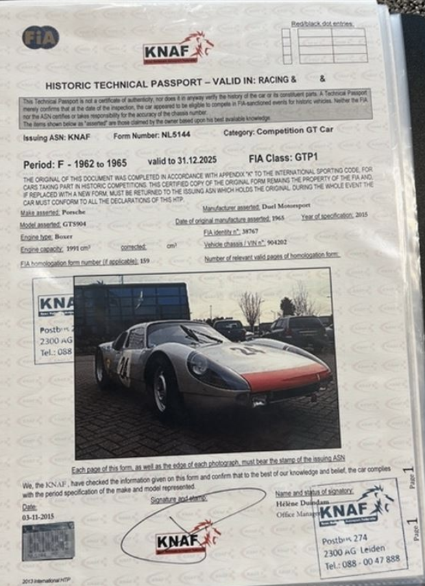 Our car was the 2nd car built and was delivered to its first and current owner in 2015 who has used the car sparingly in the last 10 years: a few sprint races at Zandvoort with the odometer show just 2775 km, corresponding to about 20 hours running. Never crashed or even slightly damaged, this 904 presents as new. The bodywork is an exacting copy done using moulds of a genuine 904. It features a heated windscreen, 110 litre fuel tank, fire system and lap timer. Every nut and bolt is correct as are the various small details such as, bonnet clamps, fuel filler, wipers, Talbot side mirrors and its 904 Carrera GTS script on the rear.